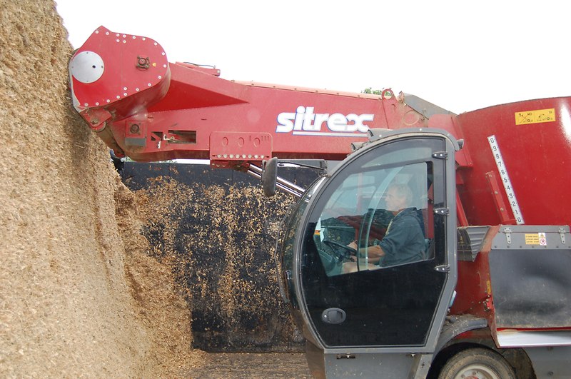 Damit das SHREDLAGE® Verfahren gut gelingt, sollte man ein besonderes Augenmerk auf das Silomanagement legen, so Eike Holfeld. Um bei der Entnahme einen Vorschub von mindestens 2,0 m sicherzustellen, hat er zunächst ausgerechnet, wie breit das Betonplattensilo angelegt werden durfte. Bei der Silobefüllung kam dann neben einem gut ballastierten 300 PSTraktor mit Planierschild zusätzlich ein 140 PS Schlepper mit einer Eisenbahnräder-Silowalze zum Einsatz. Im Ergebnis war die Verdichtung des Silagestocks absolut in Ordnung. So ist das Gesamtfazit von Eike Holfeld sehr positiv: „Wir sparen die Strohkosten und den Aufwand des Strohhandling. Das Risiko, dass die Kühe nach dem Kalben in ein größeres Energieloch fallen, ist geringer geworden. Das sind doch gute Gründe, um weiter SHREDLAGE® zu füttern.“